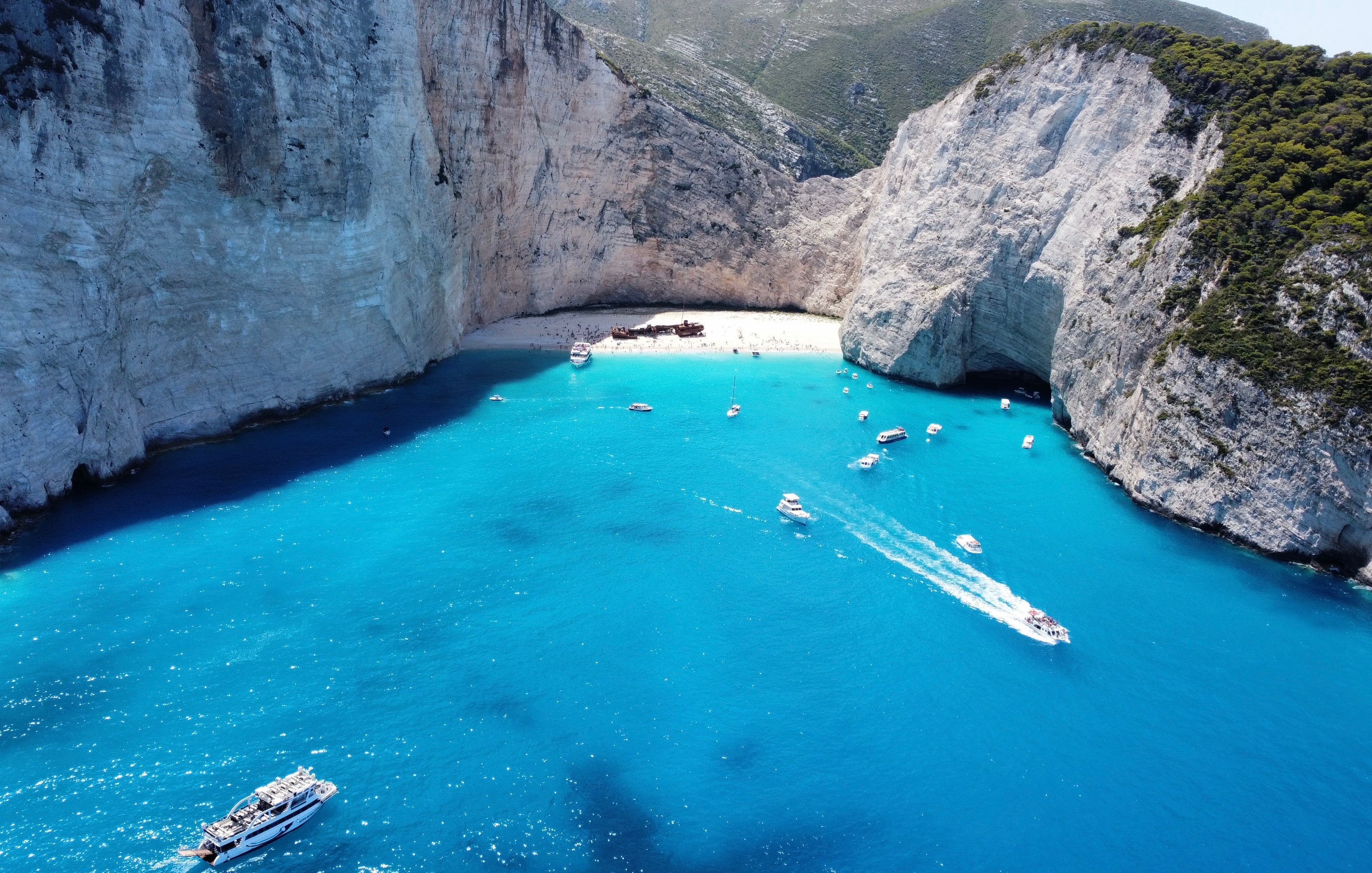 Navagio Beach - the beach that has made the island famous. There are day trips here but we recommend going via private boat. The water is an electric blue and is truly spectacular. Tip: Ensure you're confident with how the anchor is set though as you have to swim a 25-50m into shore.